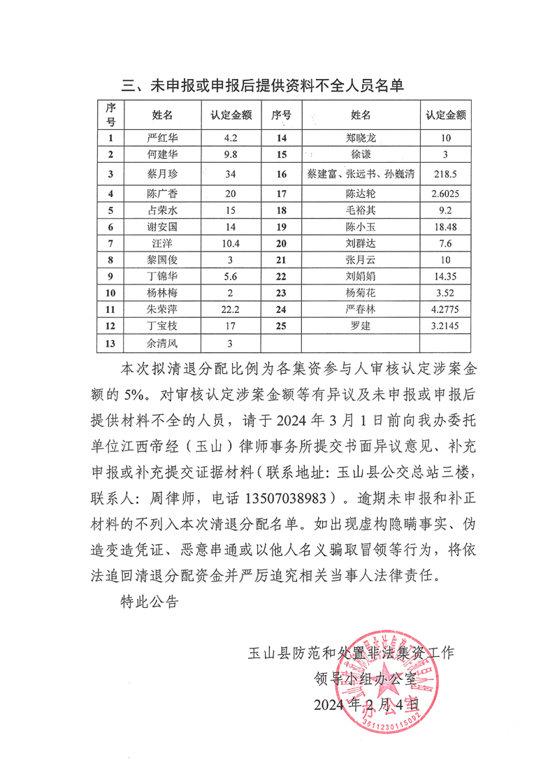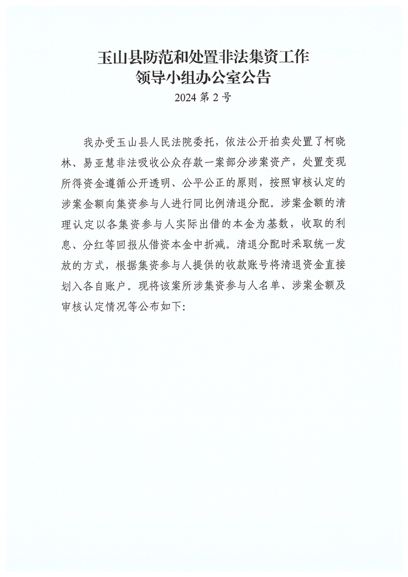 玉山縣防范和處置非法集資工作領導小組辦公室公告(2024第2號)