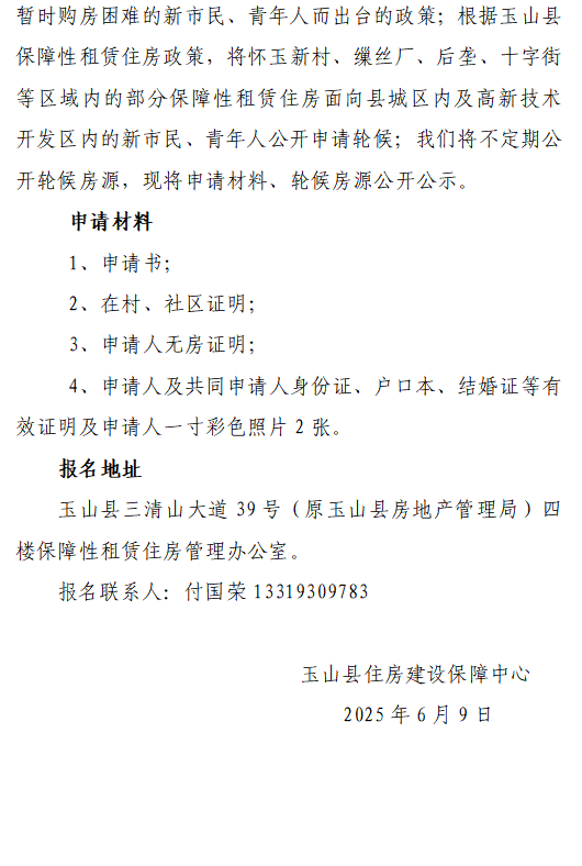 保障性租賃住房申請(qǐng)輪候公示(2025年6月9日)