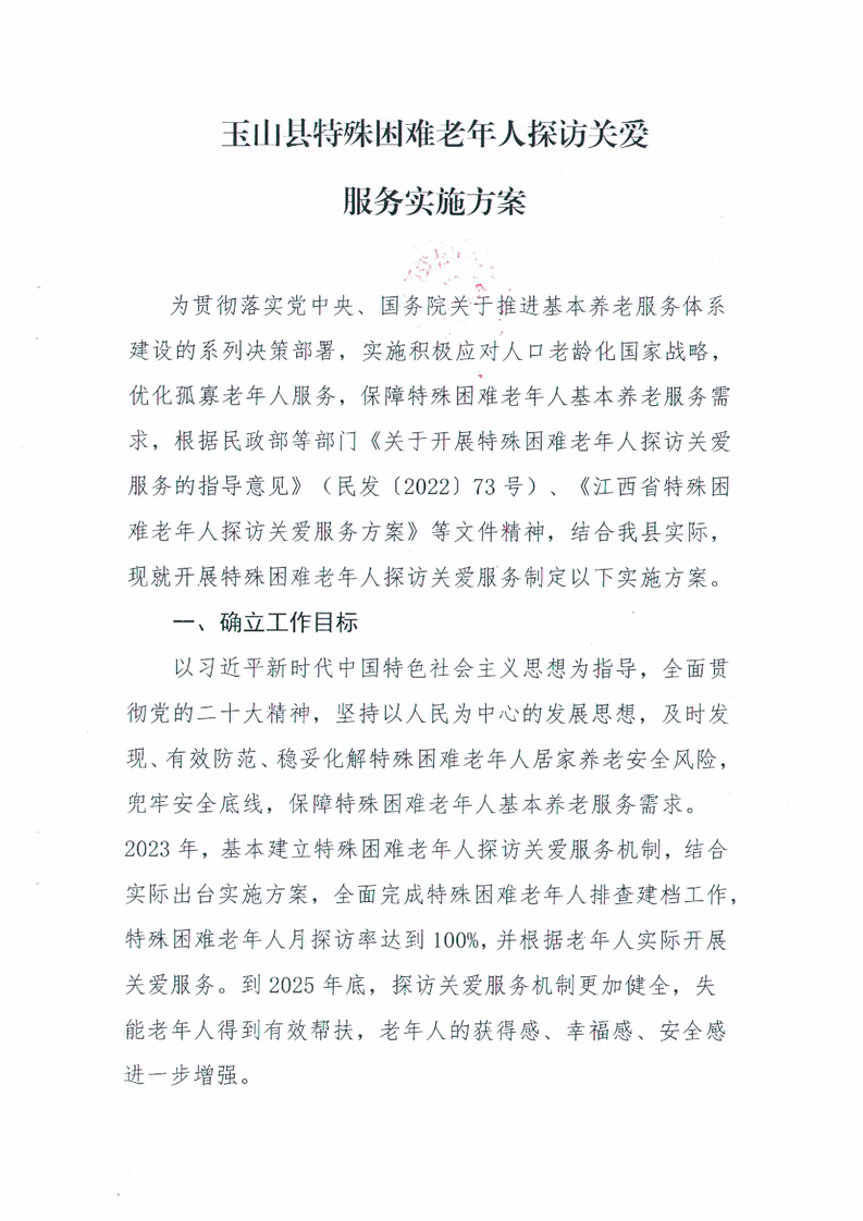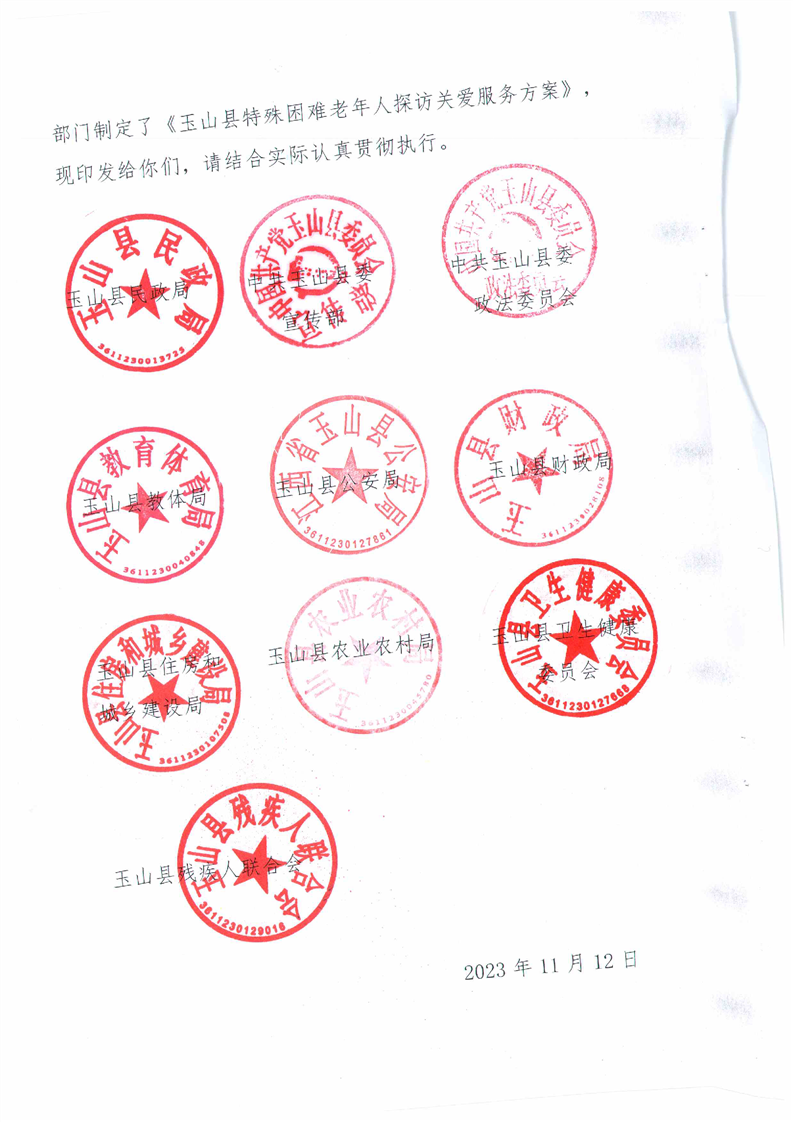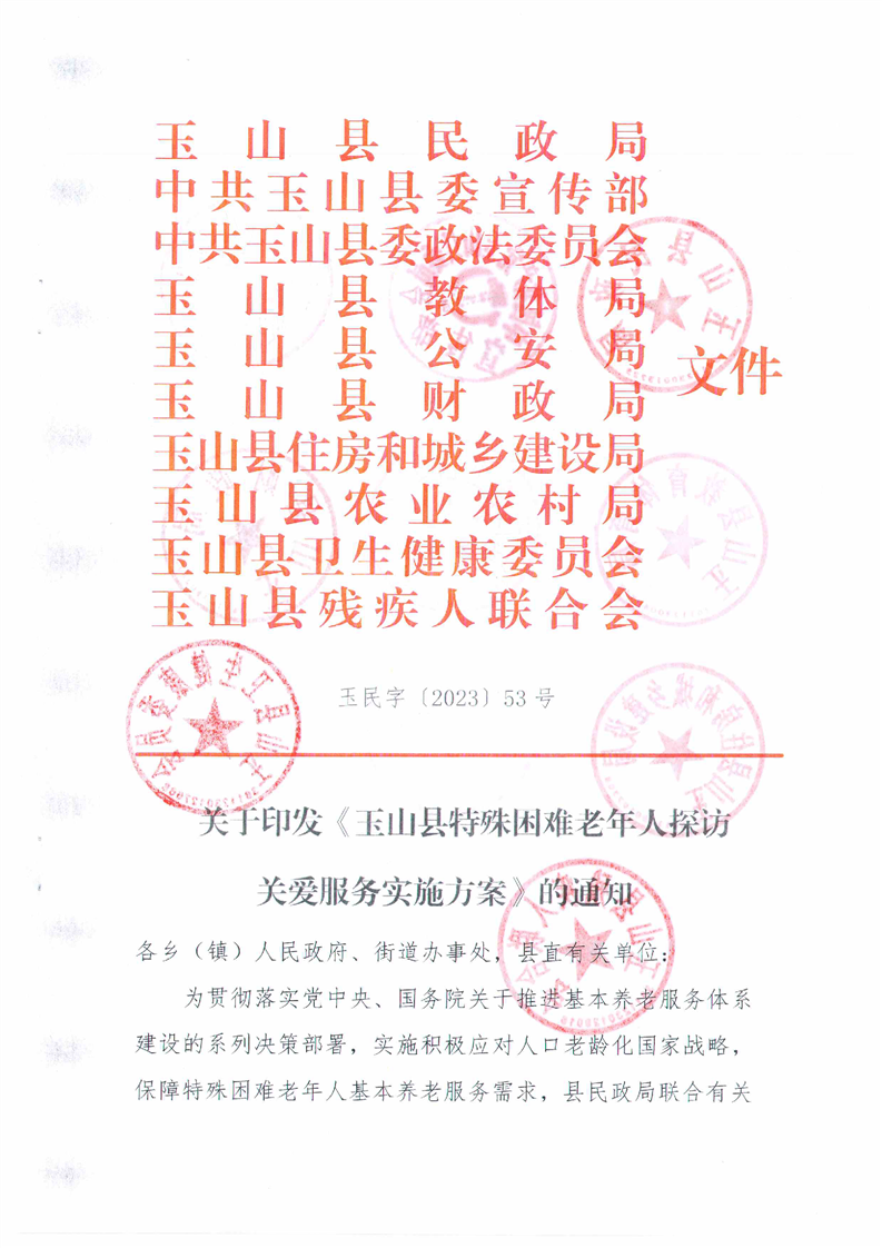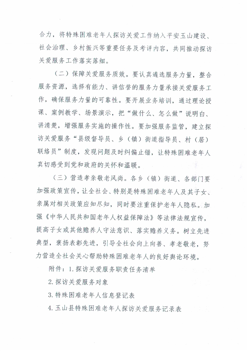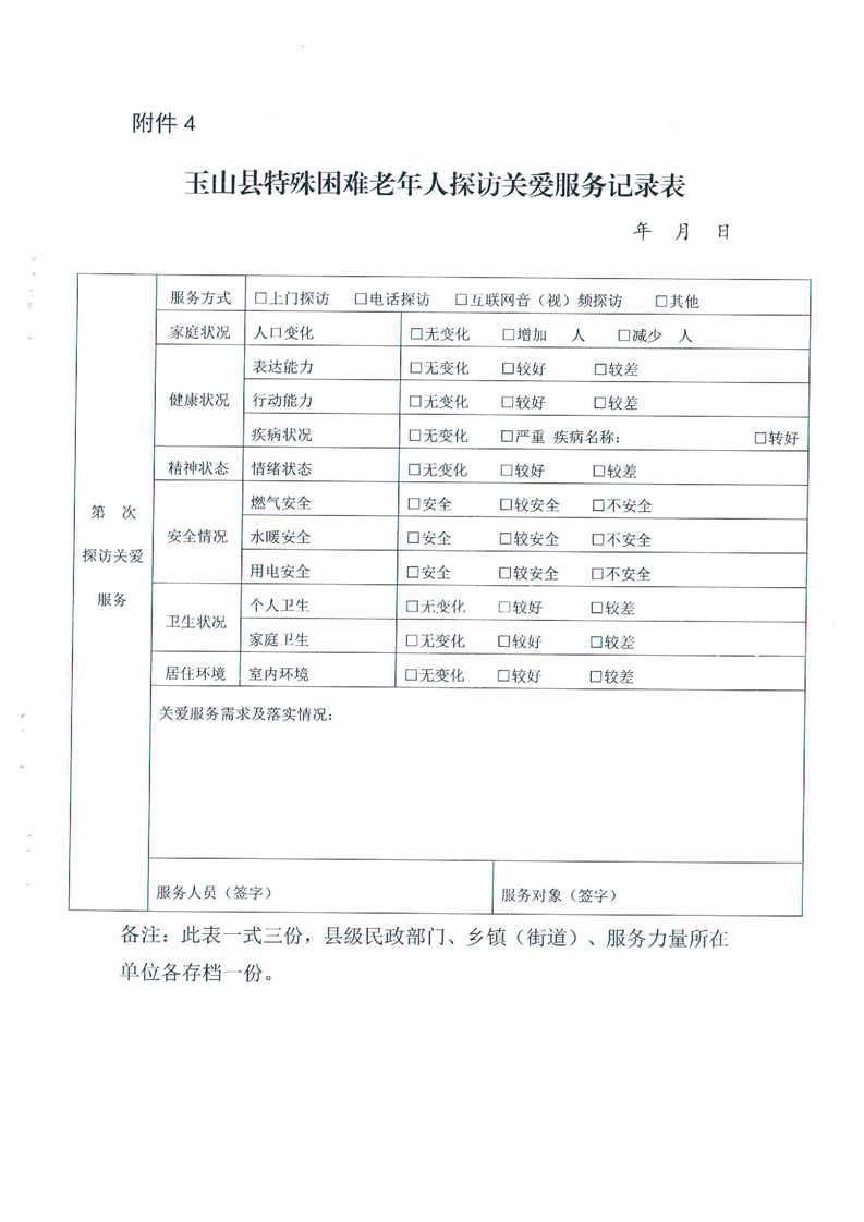 關于印發《玉山縣特殊困難老年人探訪關愛服務實施方案》的通知