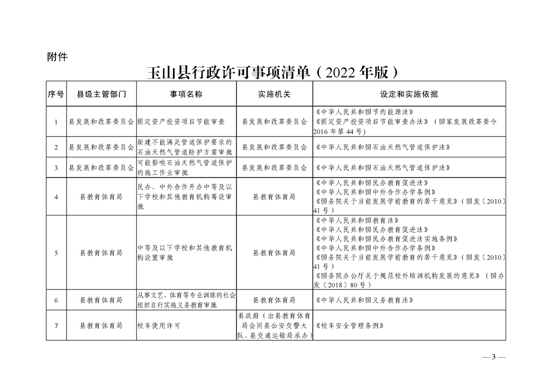 玉山縣人民政府關(guān)于公布玉山縣行政許可事項清單(2022年版)的通知